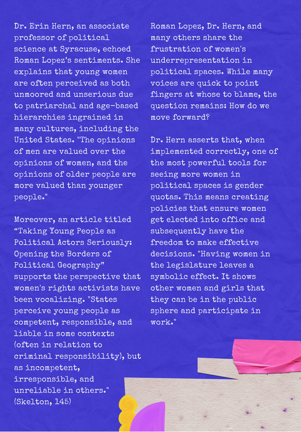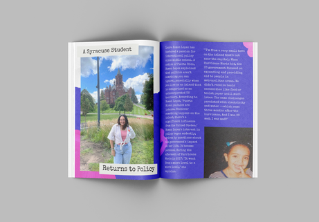 Speak. is a concept zine for women attending Syracuse University. Each zine would have one feature story surrounding a Syracuse student, displaying her story and strength through adversity. The aim of speak is to showcase the powerful women and powerful stories that students unknowingly pass by in the halls each day. The first story, featured below, is about Laura Roman Lopez and her experience as a woman of color interested in policy.